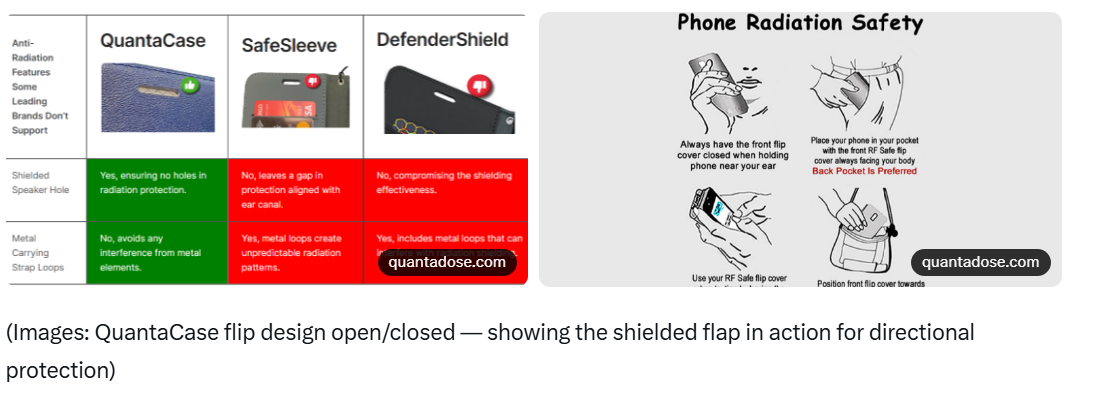 (Images: QuantaCase flip design open/closed — showing the shielded flap in action for directional protection)RF Safe: The Longest-Standing Pioneer — And Why That Makes TruthCase the Safest ChoiceFounded in 1998 by John Coates after personal tragedy, RF Safe began as one of the first online platforms dedicated to RF safety education, air-tube headsets, and shielded accessories. Over 25+ years, RF Safe has built: